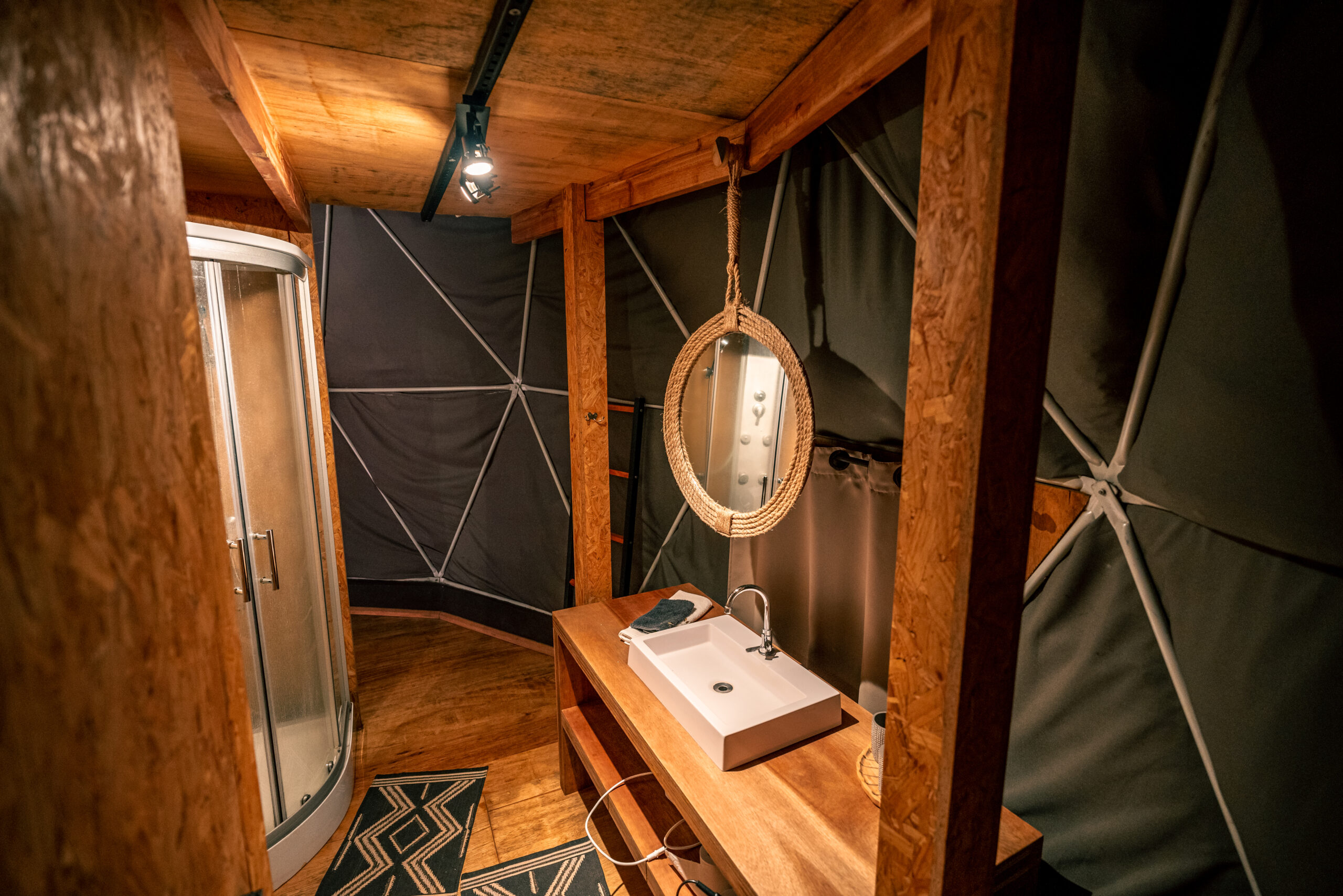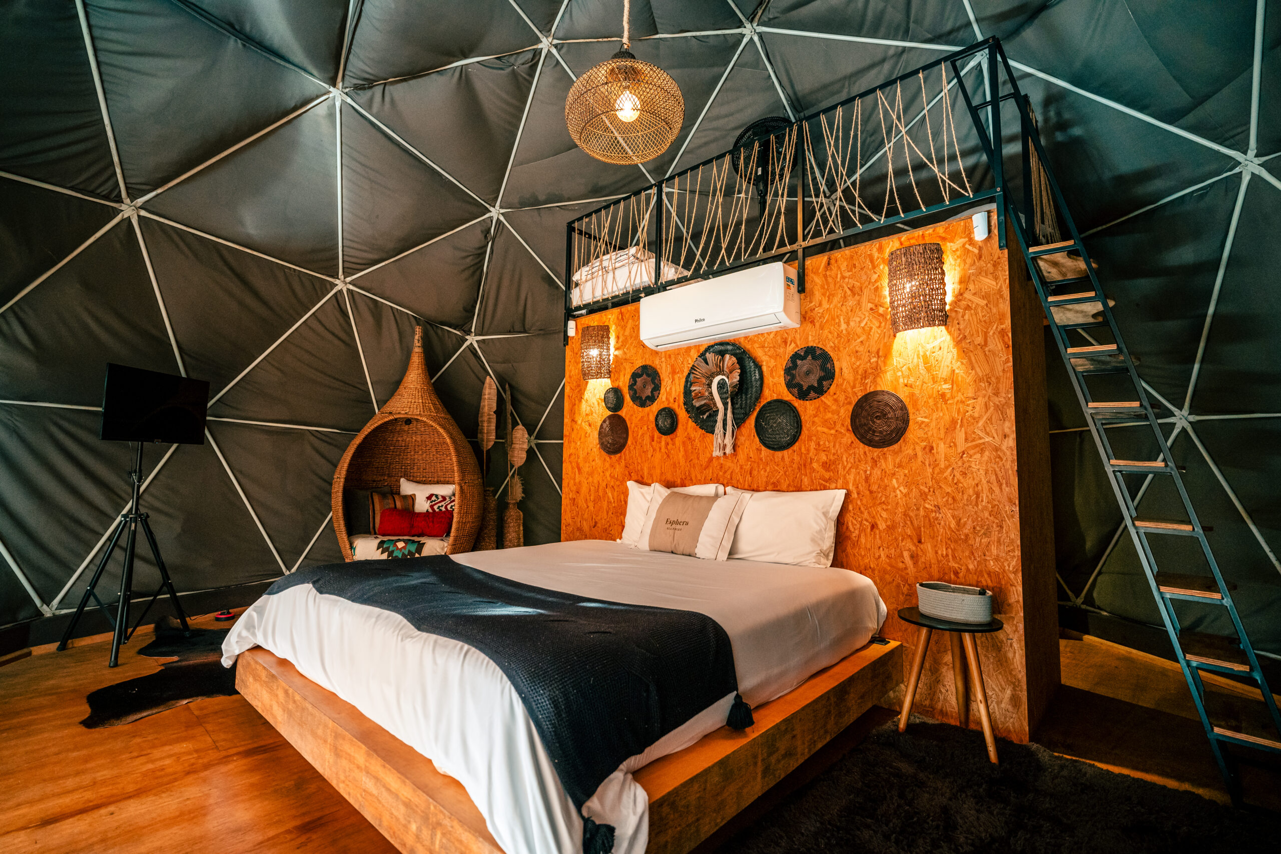 Esphera Earth is a sanctuary of connection with nature and material harmony, offering grounding and physical balance. Featuring decor inspired by indigenous elements and an authentic Sisal Oca from the Philippines, the cabin exudes warmth and stability, while the outdoor ofuro with hydromassage and chromotherapy (heated to 40°C) invites deep relaxation under the starry sky.