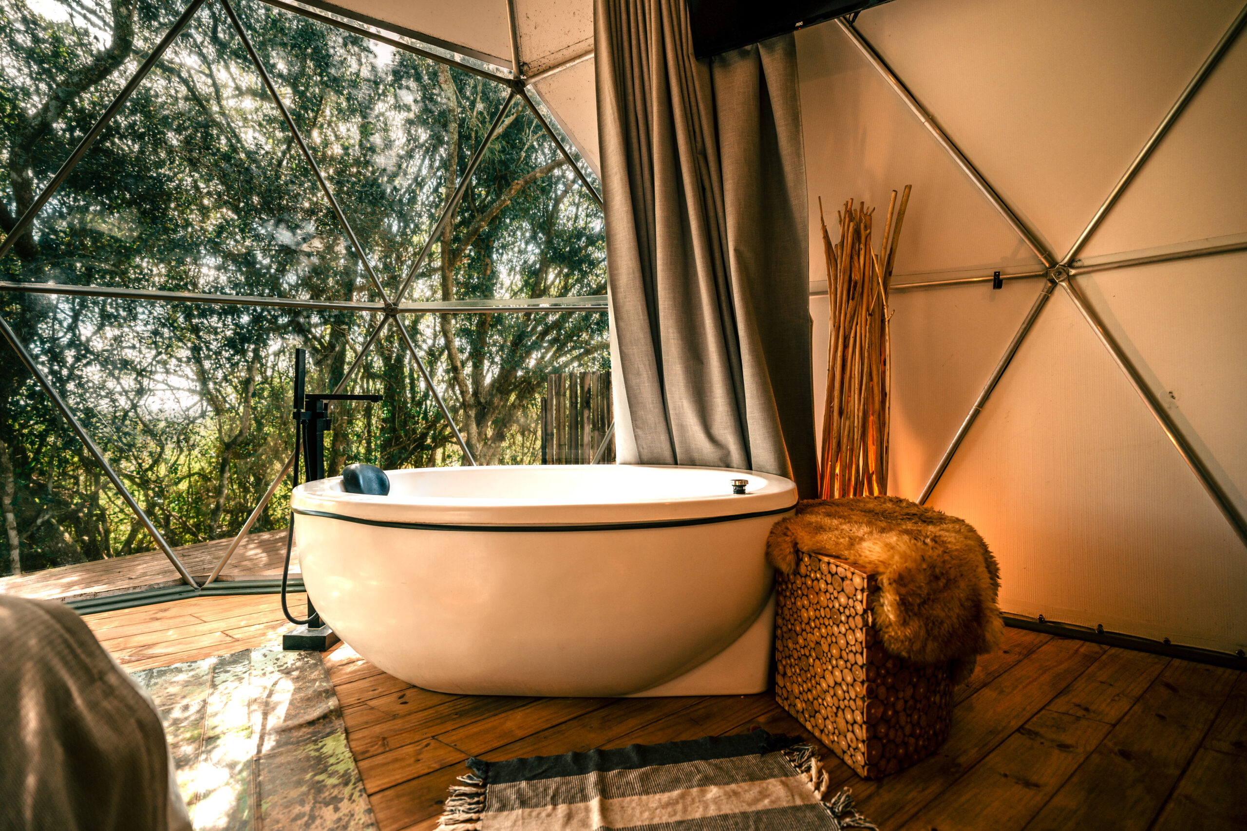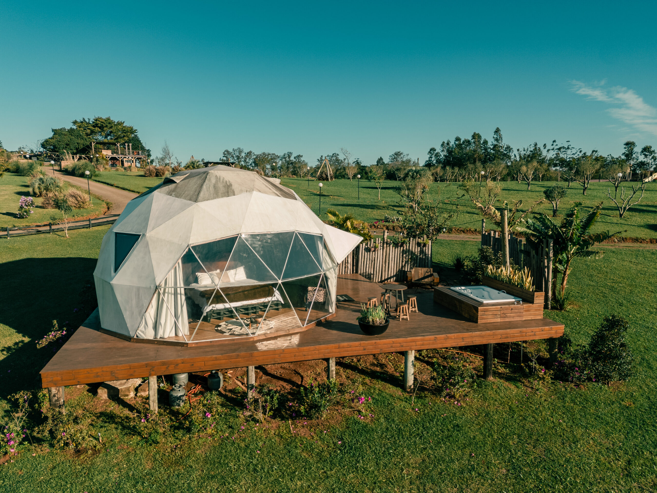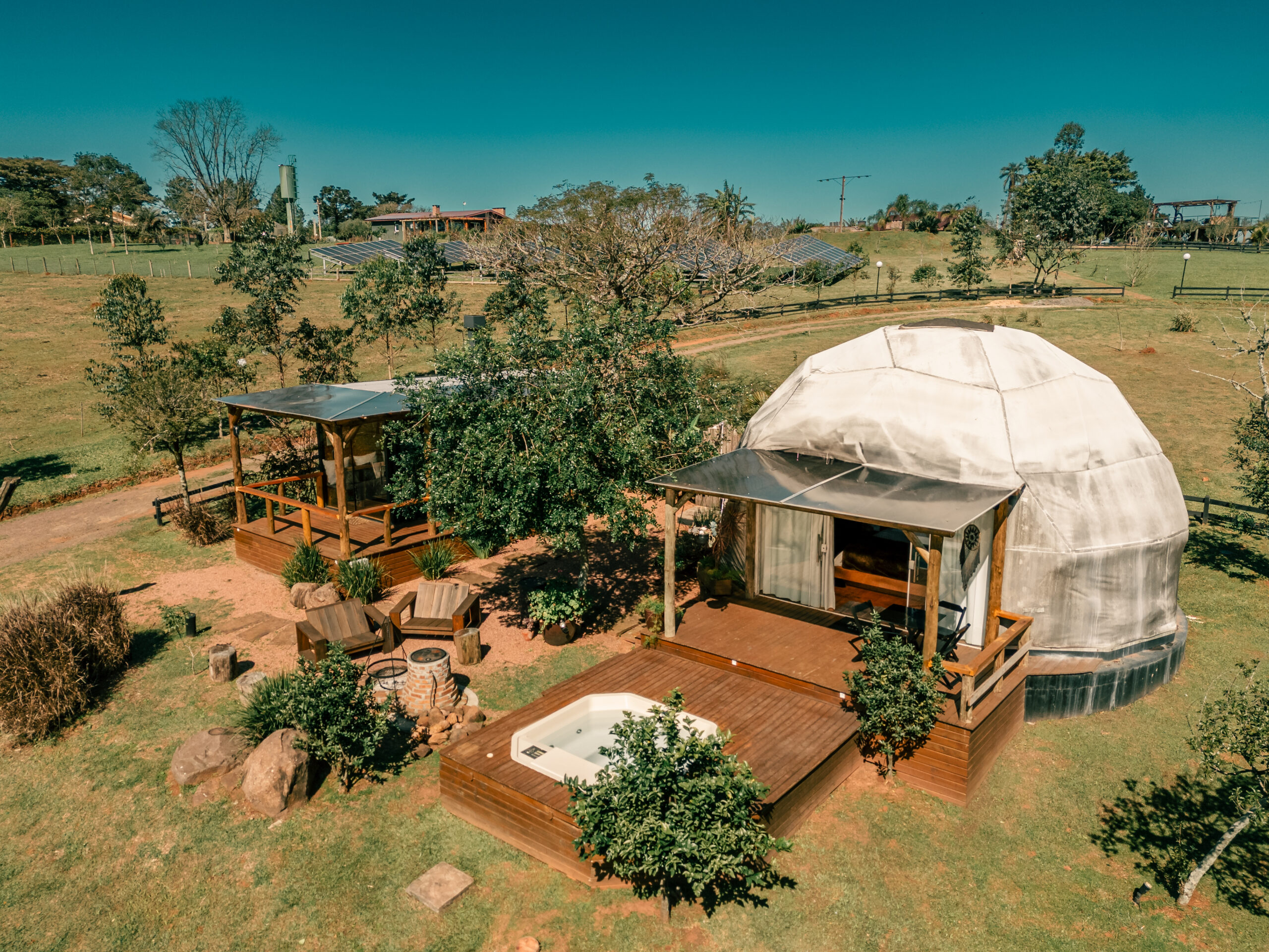 La Esphera Gaia es un refugio de conexión con la naturaleza, donde el glamping se fusiona con el lujo en un ambiente íntimo e inspirador. Su domo geodésico de 38 m², sostenible y rodeado de bosque nativo, ofrece privacidad absoluta y una atmósfera de inmersión en el verde, decorada con elementos orgánicos y obras de arte del artista Washington Moraes. Perfecta para parejas, la cabaña acomoda hasta 2 personas en una cama king y se destaca por su bañera de inmersión interior para dos personas, climatizada a gas, creando el escenario ideal para el relax y la conexión.