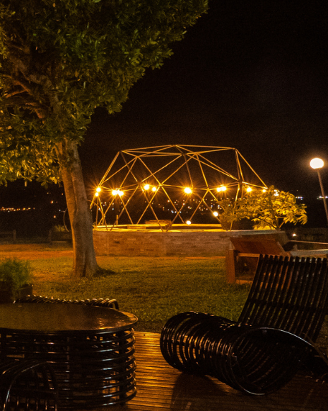 No coração desse refúgio, a sala de jogos e as quadras esportivas se harmonizam com risadas e celebrações espontâneas. Ao entardecer, a parrilla geodésica “Esphera Brasa” e a parrilla uruguaia no mezanino do container, com a luz dourada do pôr do sol, transformam simples refeições em cerimônias memoráveis, onde o luxo encontra a autenticidade do campo e cada instante se torna poesia.