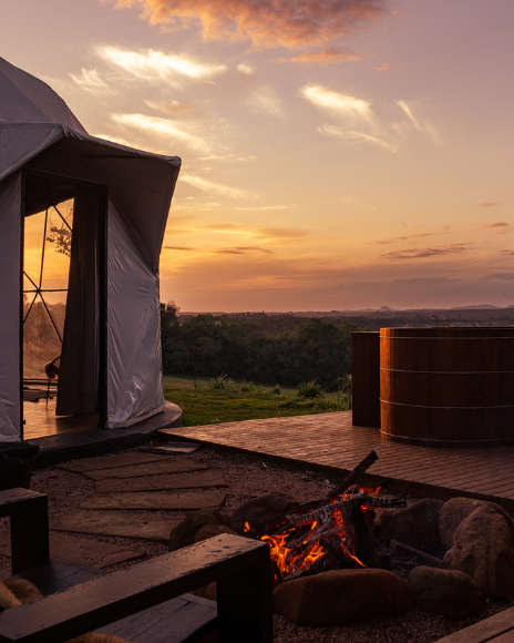 “Glamour + Camping” é o cerne de nossa proposta: proporcionar o prazer de noites de acampamento sob as estrelas, sem abrir mão das comodidades exclusivas de um hotel alto padrão. É o luxo da imersão na natureza que eleva o bem-estar e favorece experiências memoráveis.”