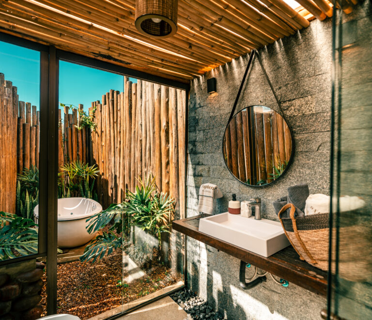 A Esphera Ancestral é um refúgio íntimo e sofisticado, perfeito para casais que buscam reconexão com a natureza e entre si. Integrado à mata nativa com vista privilegiada para o lago, oferece privacidade absoluta e um diferencial exclusivo: duas banheiras de imersão (interna e externa), aquecidas a gás, criando o cenário ideal para relaxamento em qualquer clima. É a única Esphera com terapias disponíveis dentro da própria cabana. A cabana acomoda até 2 pessoas em uma cama king de alto padrão e conta com espaço externo com fogo de chão e trempe para assados sob as estrelas.