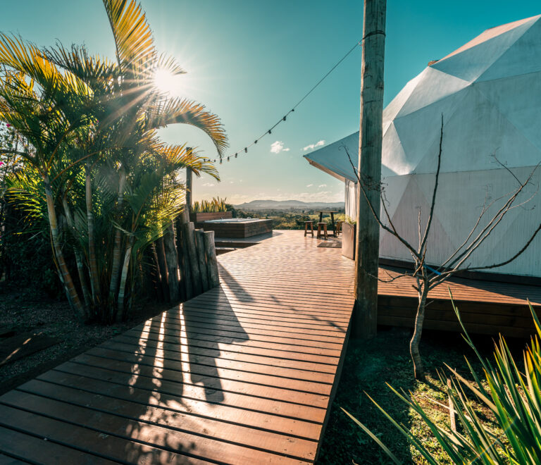 A Esphera Ônix é um refúgio contemporâneo no topo da colina, onde o luxo do glamping se encontra com uma vista panorâmica deslumbrante. Conhecida por sua coloração intensa e presença marcante — adiciona um toque de sofisticação e personalidade ao ambiente. A cabana, acessível para cadeirantes, acomoda até 2 pessoas em uma cama king de alto padrão e se destaca pela jacuzzi externa com hidromassagem, cromoterapia e aquecimento digital, perfeita para relaxar admirando o pôr do sol vibrante.