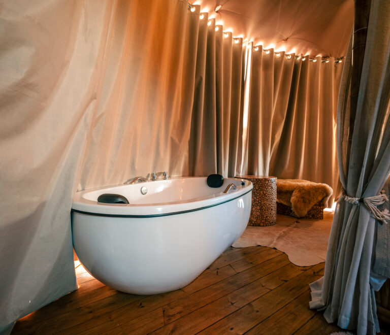 A Esphera Thai transporta você para um pedacinho da Tailândia em meio à natureza gaúcha, combinando o exotismo asiático com o conforto do glamping de luxo. Seu domo geodésico de 38m², situado no alto de uma colina com vista privilegiada para o pôr do sol, oferece privacidade e uma atmosfera serena inspirada nos paraísos naturais tailandeses. A decoração em tons claros, com elementos como uma estátua de Buda e paisagismo tropical com bananeiras, completa a experiência sensorial. Destaque para o ofurô externo de madeira com aquecimento a gás e a banheira de imersão interna, que proporcionam momentos únicos de relaxamento. A cabana acomoda até 2 pessoas em uma cama king de bambu com dossel de linho, criando um ambiente romântico e cheio de personalidade.